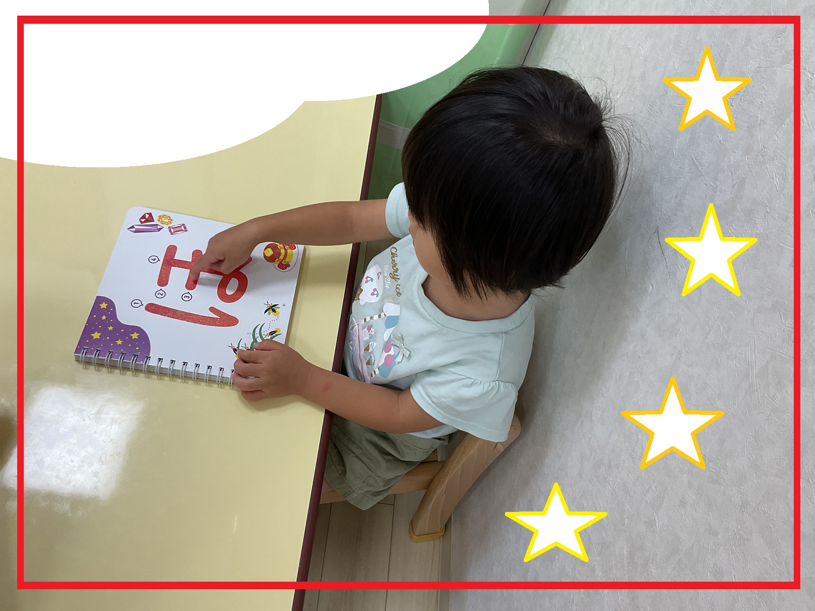 「私の○はどこ?」「これは○○くんのだ!」と自分の名前に入っているひらがなからだんだんと知っているひらがなが増えてきました。