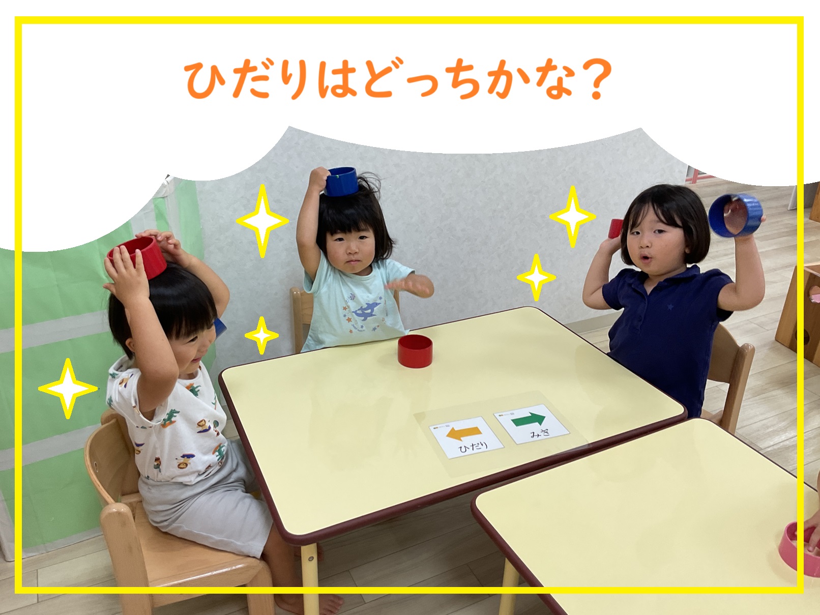 輪っかを使って、右左どっちゲームの様子。