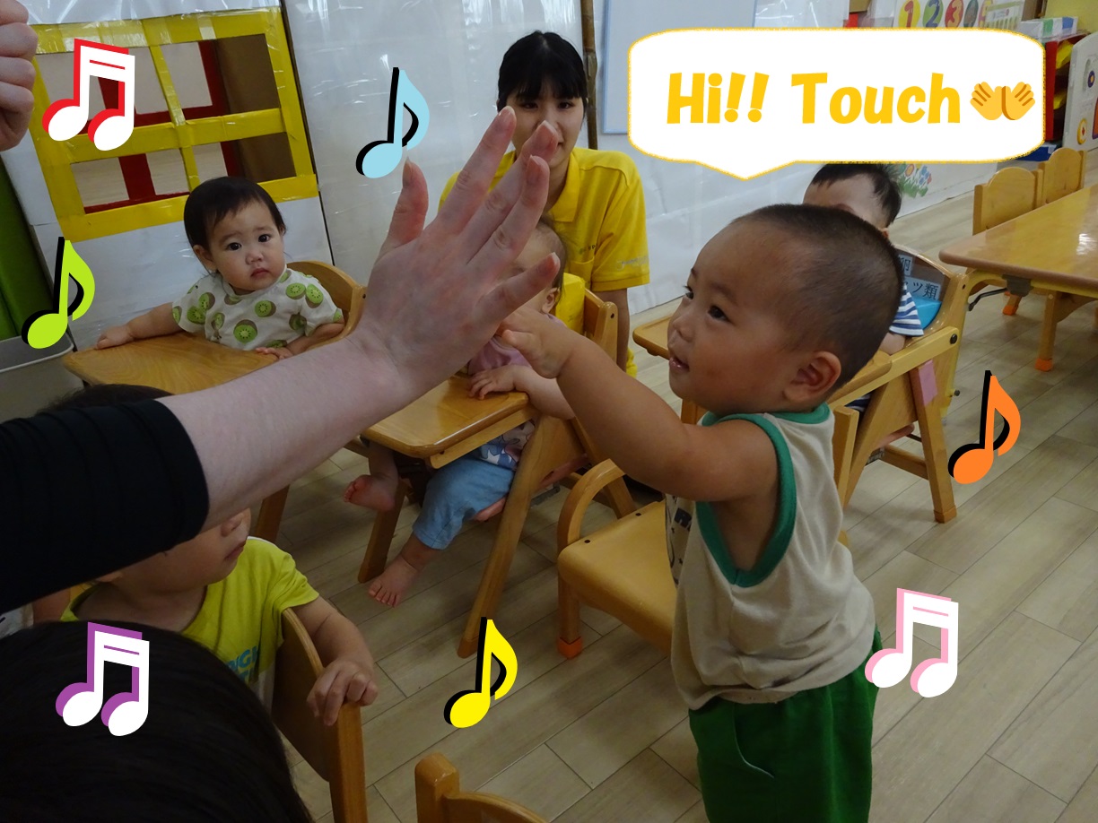 自分のお名前が呼ばれると、いつも元気よく手を挙げたり、カードや先生にタッチをして挨拶をする姿が見られます!