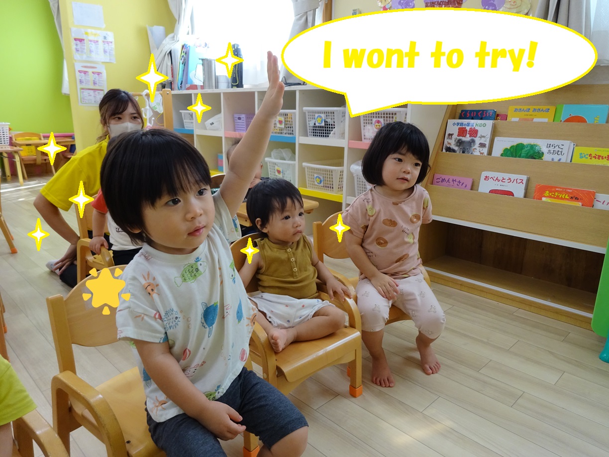 ゲームに参加したいときには、大きな声で「I wont to try!」と発言します✨