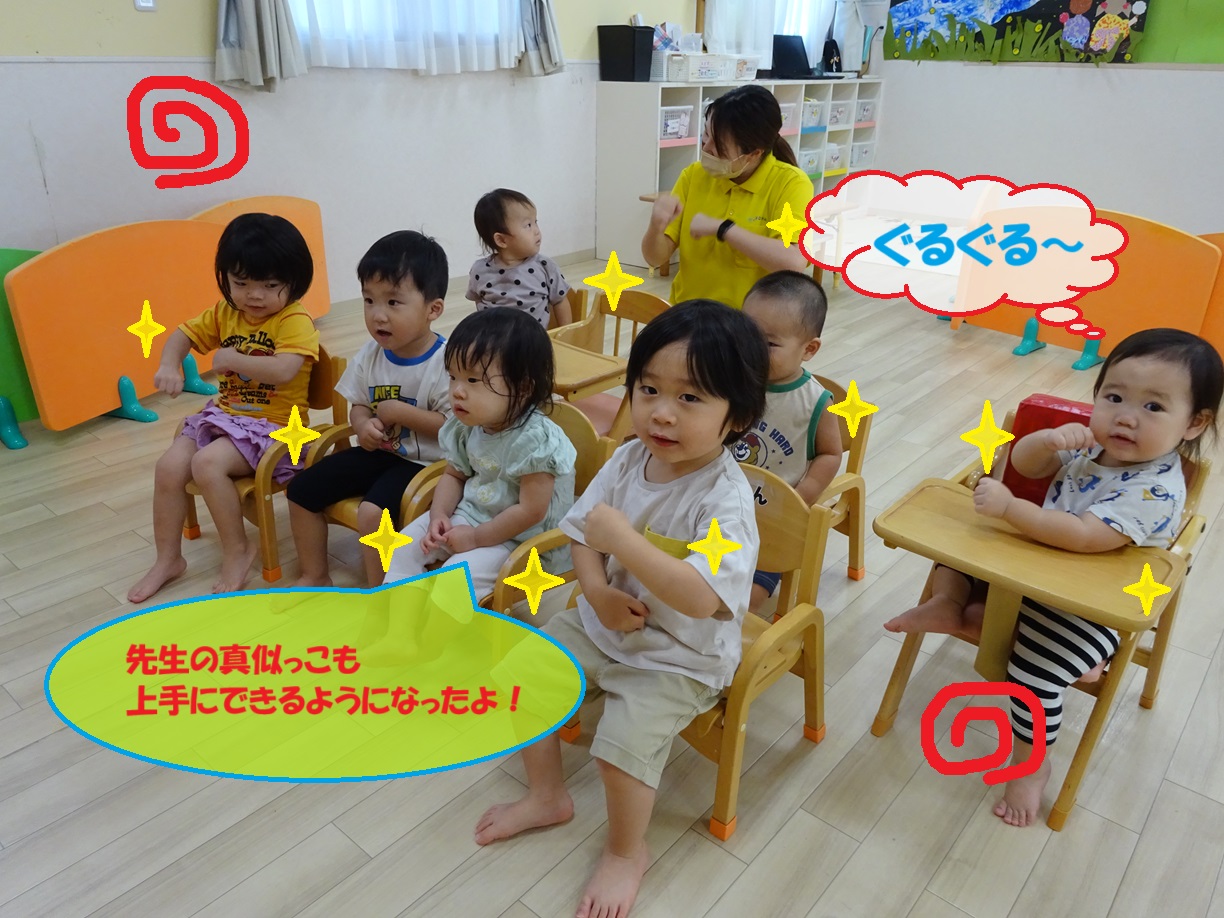 スピカ組さんもEnglish timeが楽しめるように、ひとりひとりに合わせて保育士がフォローしながら参加しています♪