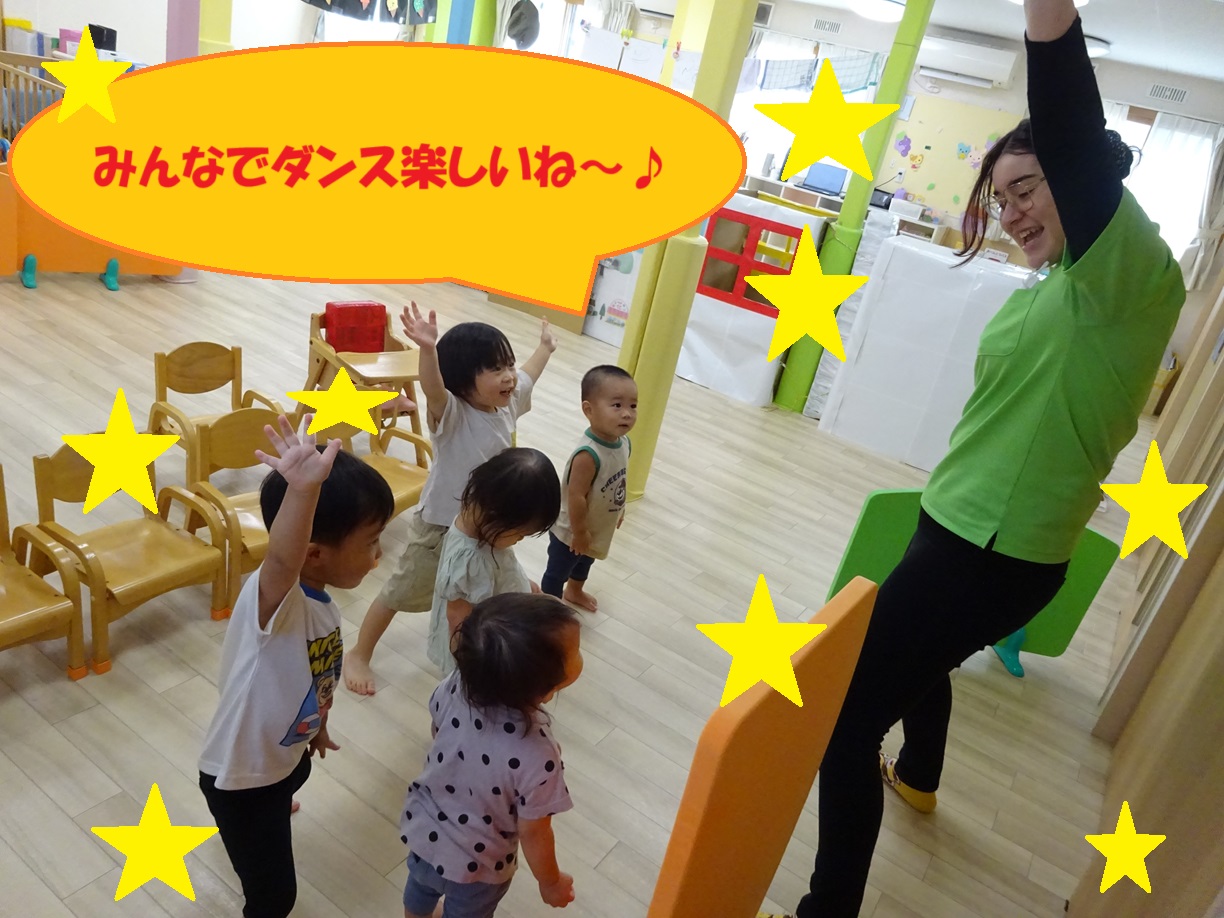リラ先生の様子をじっと見て楽しむ子、真似して楽しむ子、みんなそれぞれの楽しみ方でダンスを楽しんでおられますよ!