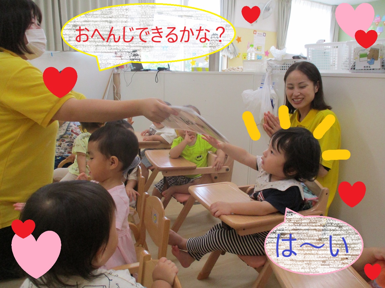 自分のお名前では、初めは「○○くんです」等お名前の部分しか言えなかったですが、先生がお名前を尋ねると「○○(苗字)○○(名前)です!」と上手に答えてくださいます。