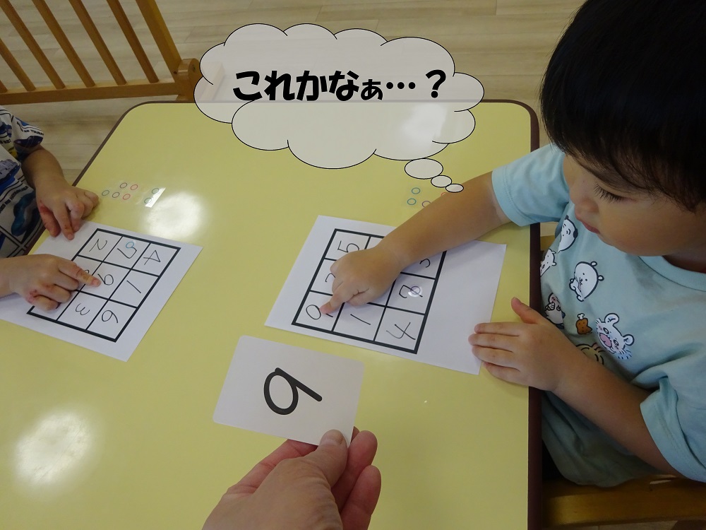 数字を行う際には、ビンゴのように箱から引いた数字を見つけるゲームをして楽しみながら理解に繋げています。