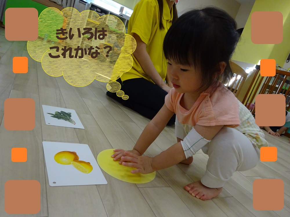 また、色や形などを果物・野菜カードや乗り物カードなどと結びつけながら行うことで理解が深まっているように感じています✨