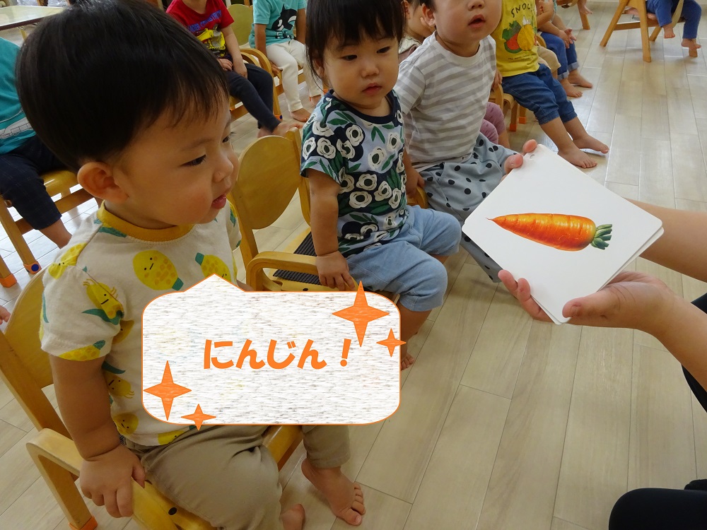 野菜カードでは断面のカードなども使用し、野菜の中にも興味津々👀!
