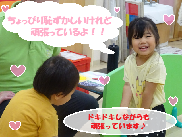 前に出てみんなに注目されるのは恥ずかしいですが、ドキドキしながらも一生懸命、頑張っています!