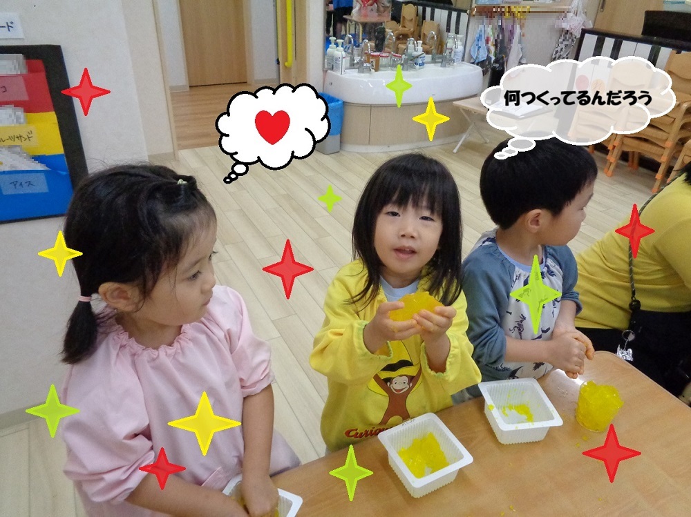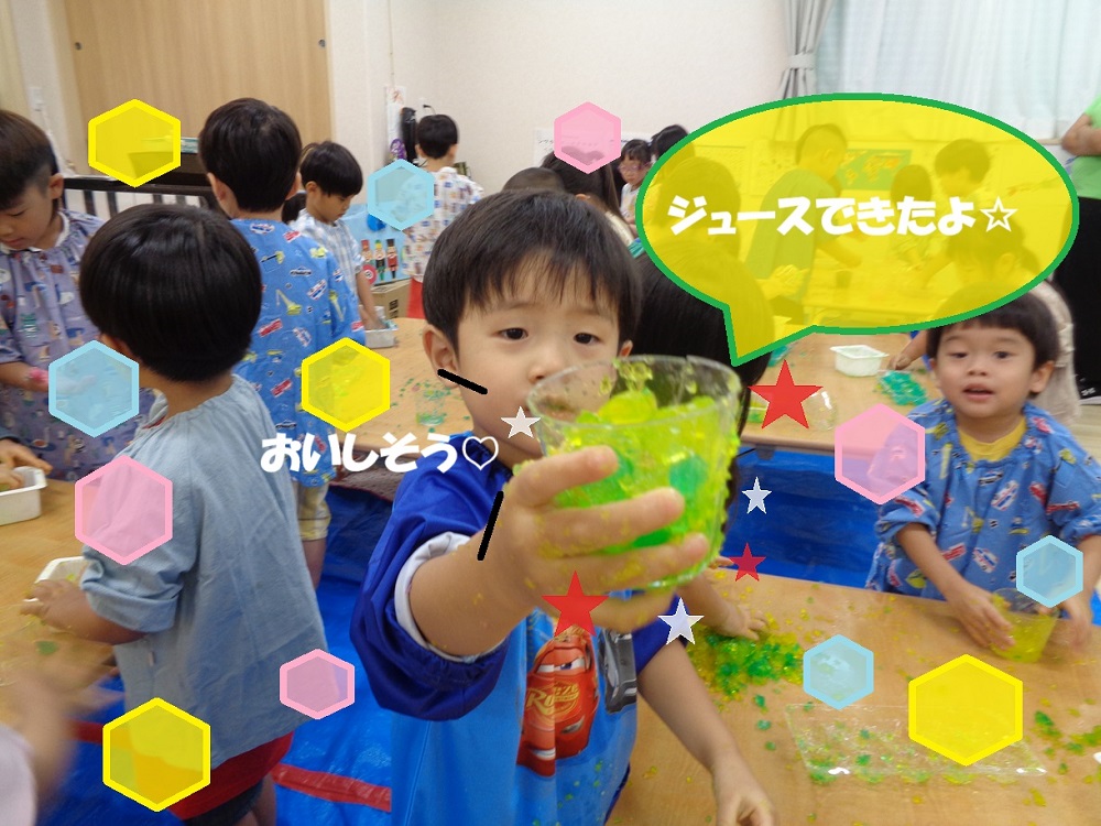 寒天が混ざると色が変わっていく姿に子どもたちも驚いていました。