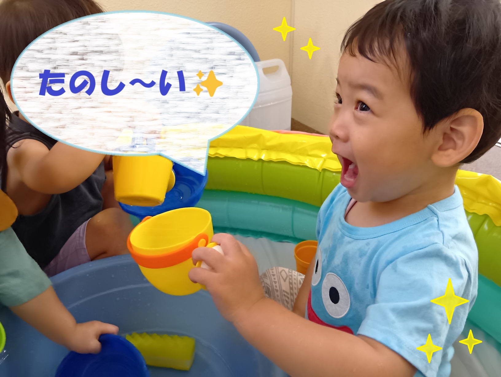 「今日は水遊びするよ~!」と先生がいうと、「やったー💓」という声があちらこちらからあがります!