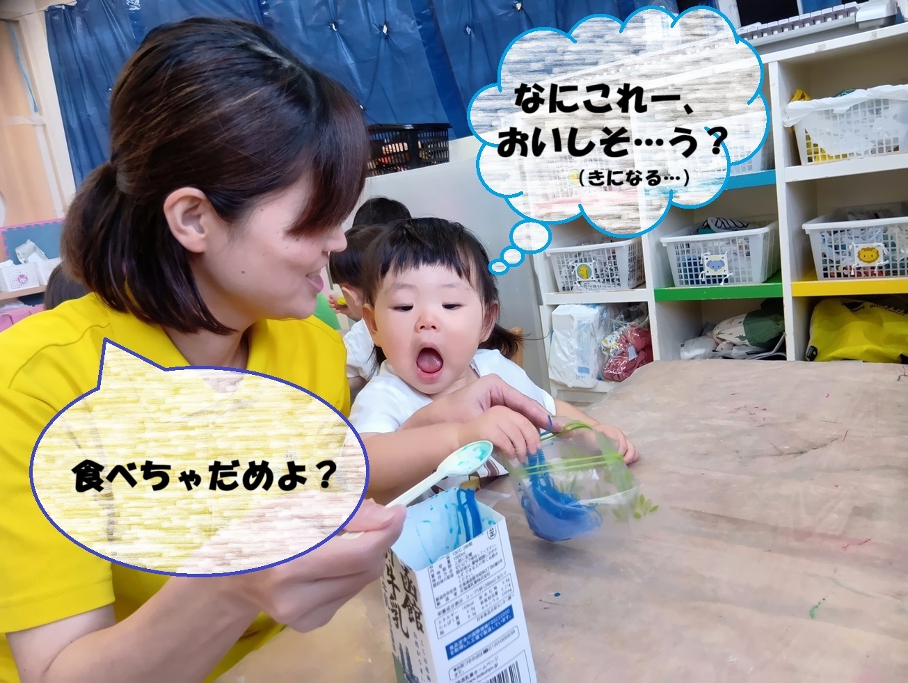 その後は、赤・青・黄色と作った色を混ぜながら、長時間集中して遊びこんでいました✨