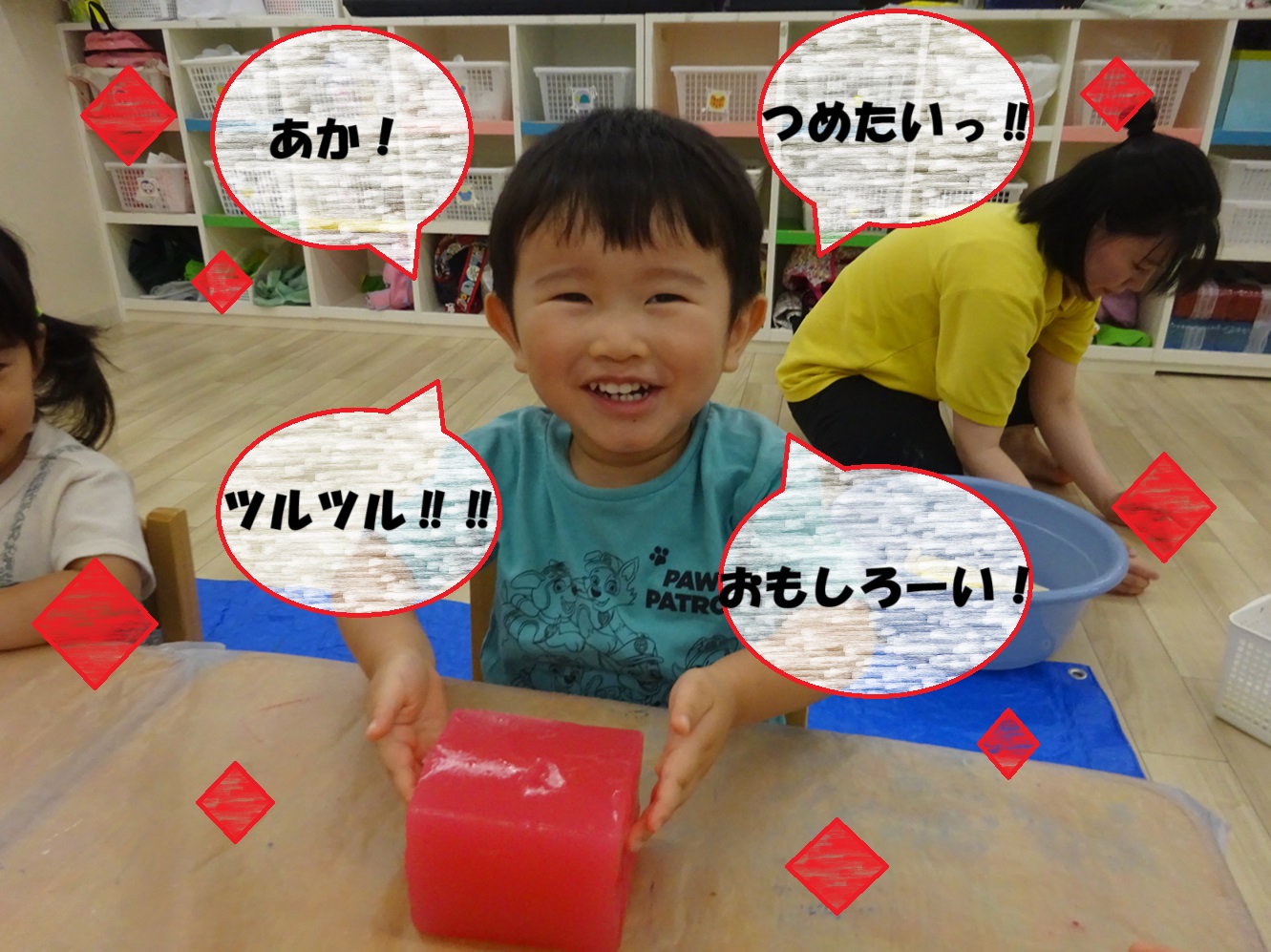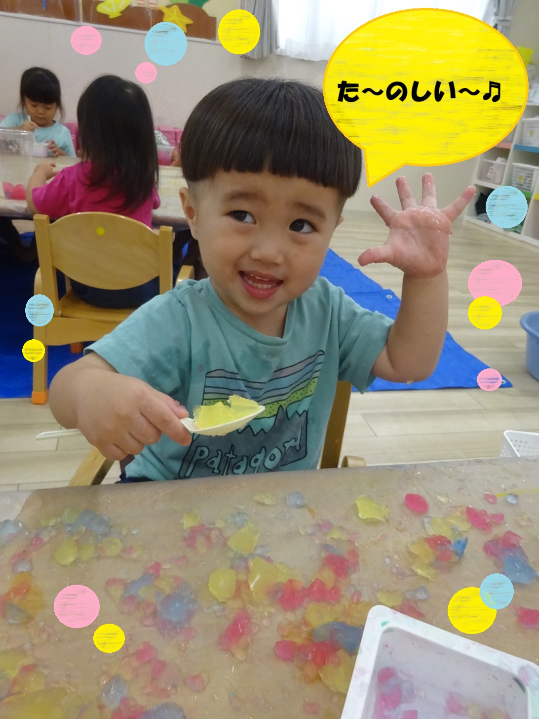 寒天やゼリーを使った感触遊びもしましたよ😊