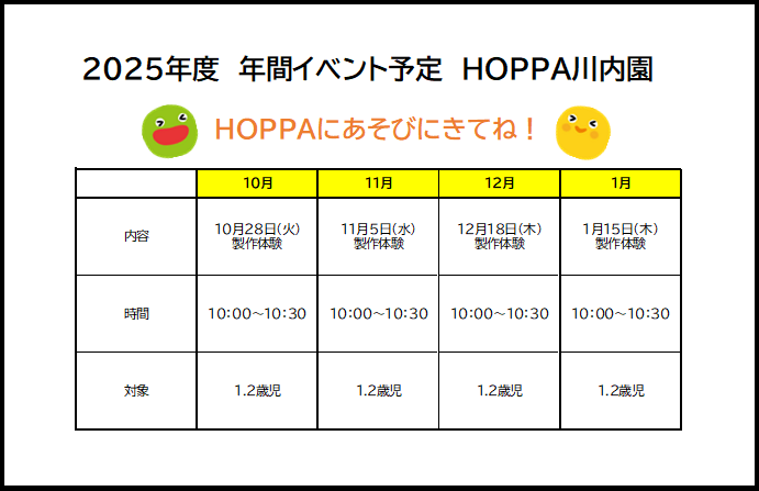 【広島市安佐南区イベント情報】2025年度年間イベント予定 【HOPPA川内園】