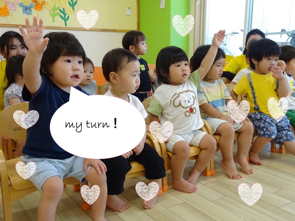 お友だちの前に出てくるときには、「マイターン!!」と言いながら手を挙げてアピール♬