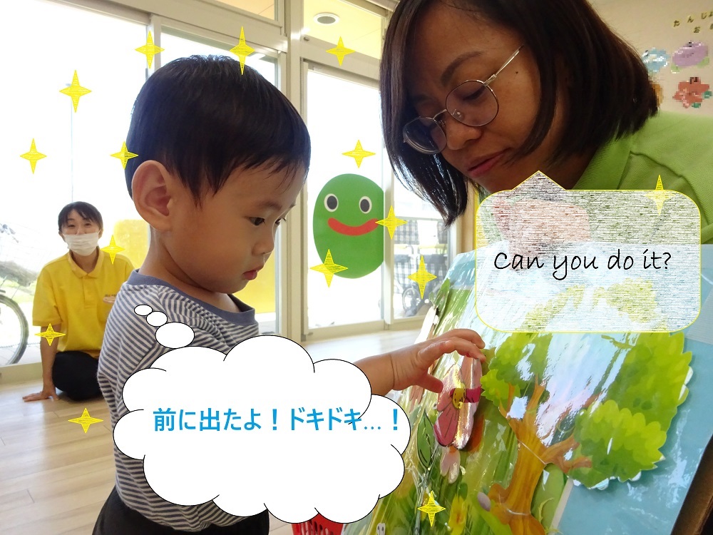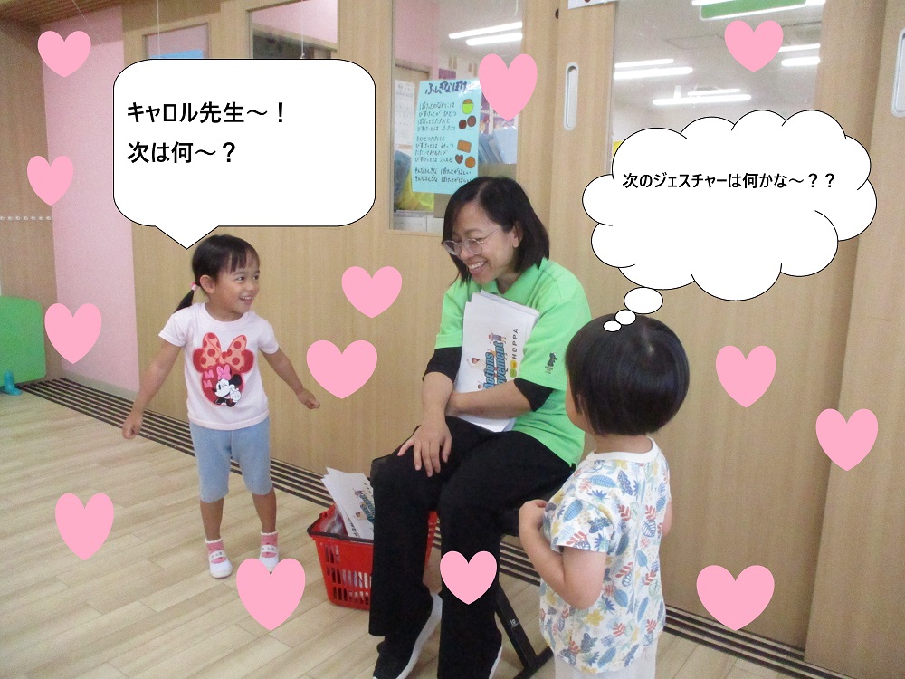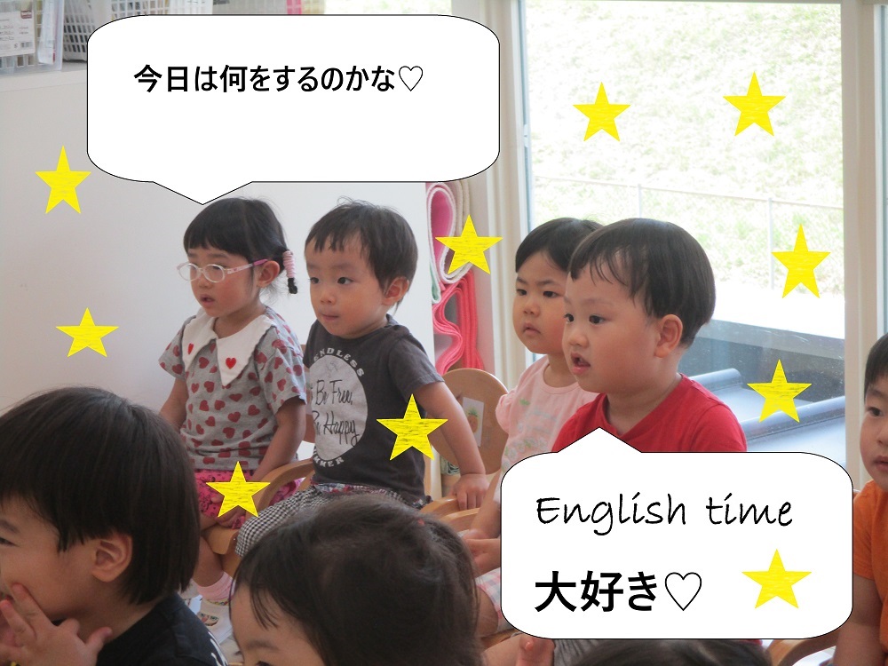 毎日「今日はEnglishある?」と職員に問いかけ、「Englishあるよ」と答えると「やったー」と飛んで喜んでいます。