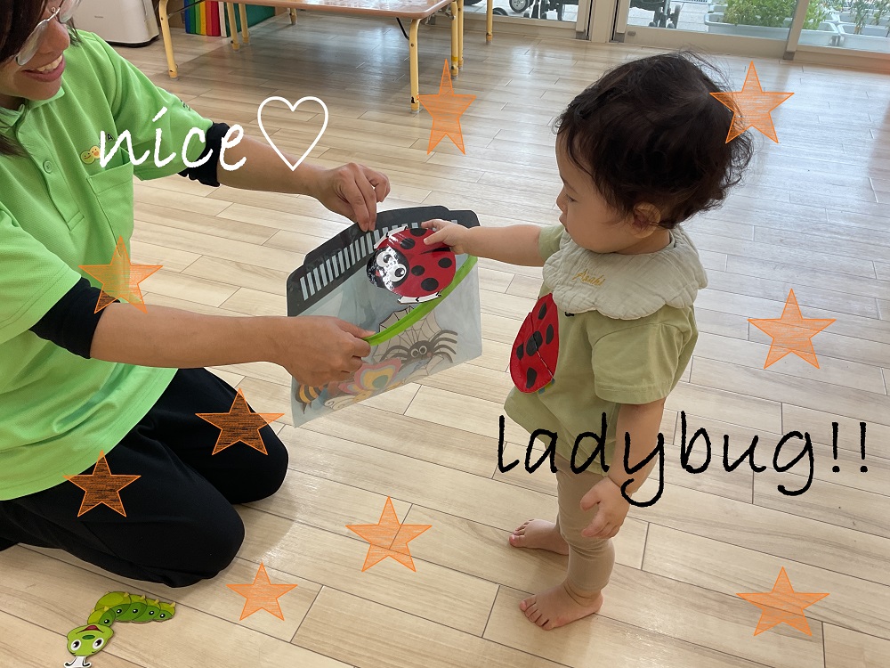 「butterfly!」「caterpillar!」と、動きを真似してEnglish timeを楽しんでいます♡