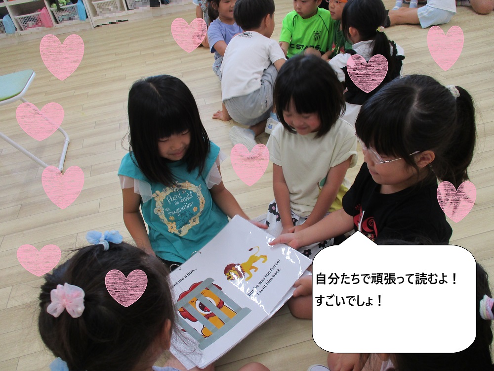 レッスンの時間だけでなく、自由な絵本タイムにも大きな声が響いていますよ!