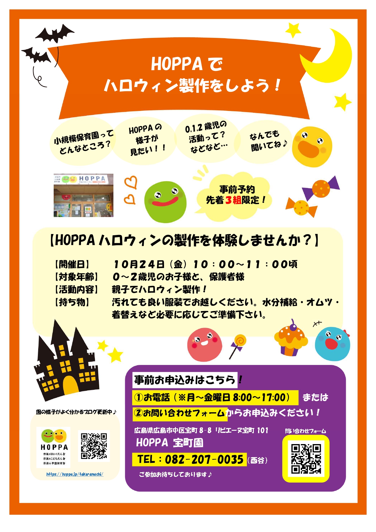 HOPPA宝町園は、 広島市中区の小規模認可保育園(定員19名)です♬