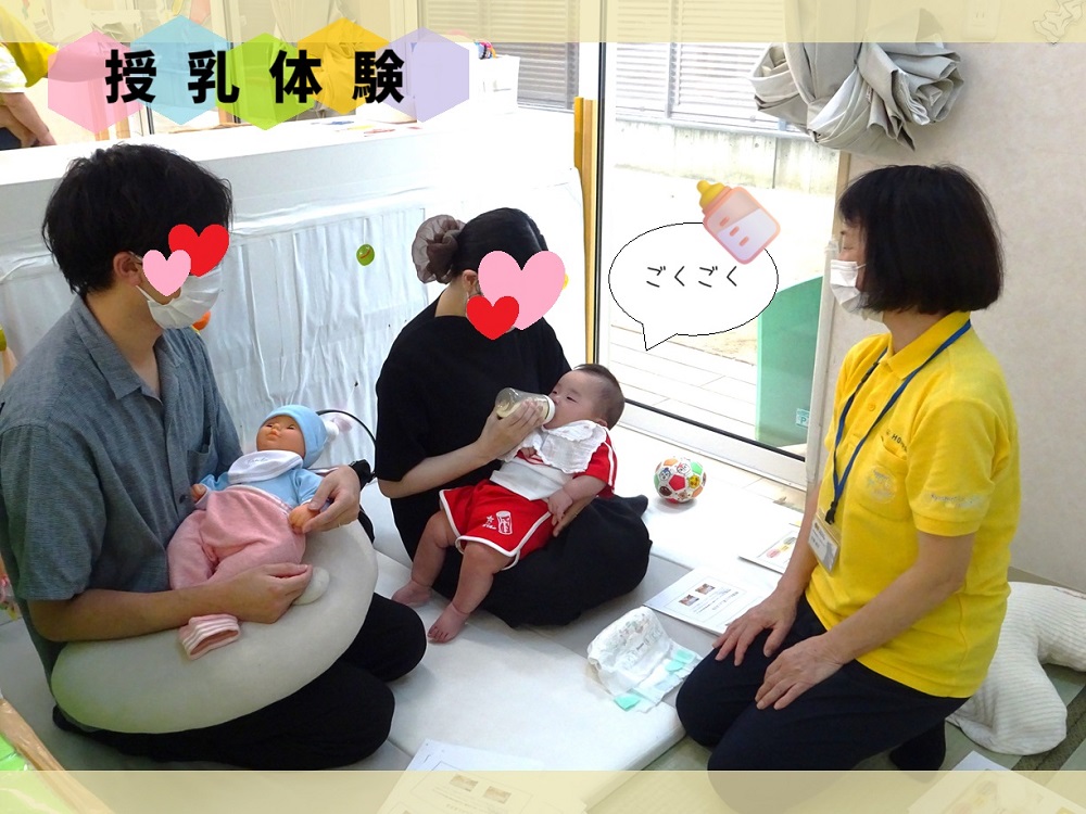 はじめてのママ・パパに実際のお子様(園児)を抱っこしていただいたり、授乳の経験をしていただきます。