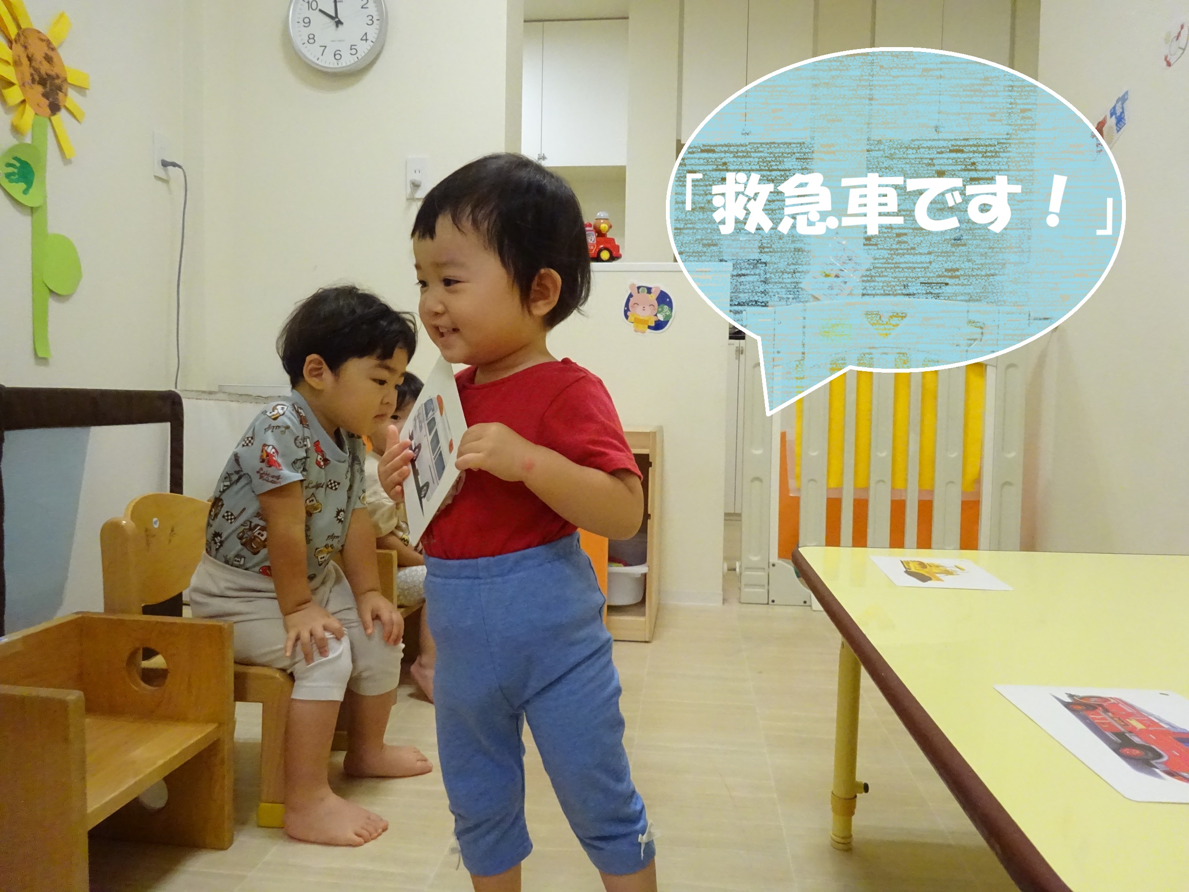 見つけたカードを持って、「救急車です!」としっかり発表する姿は、とても頼もしく見えました✨
