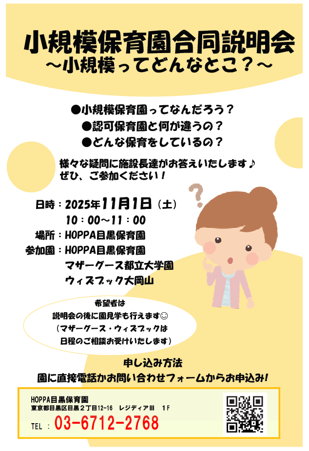 【東京都目黒区】目黒区小規模保育園合同説明会のお知らせ【HOPPA目黒保育園】