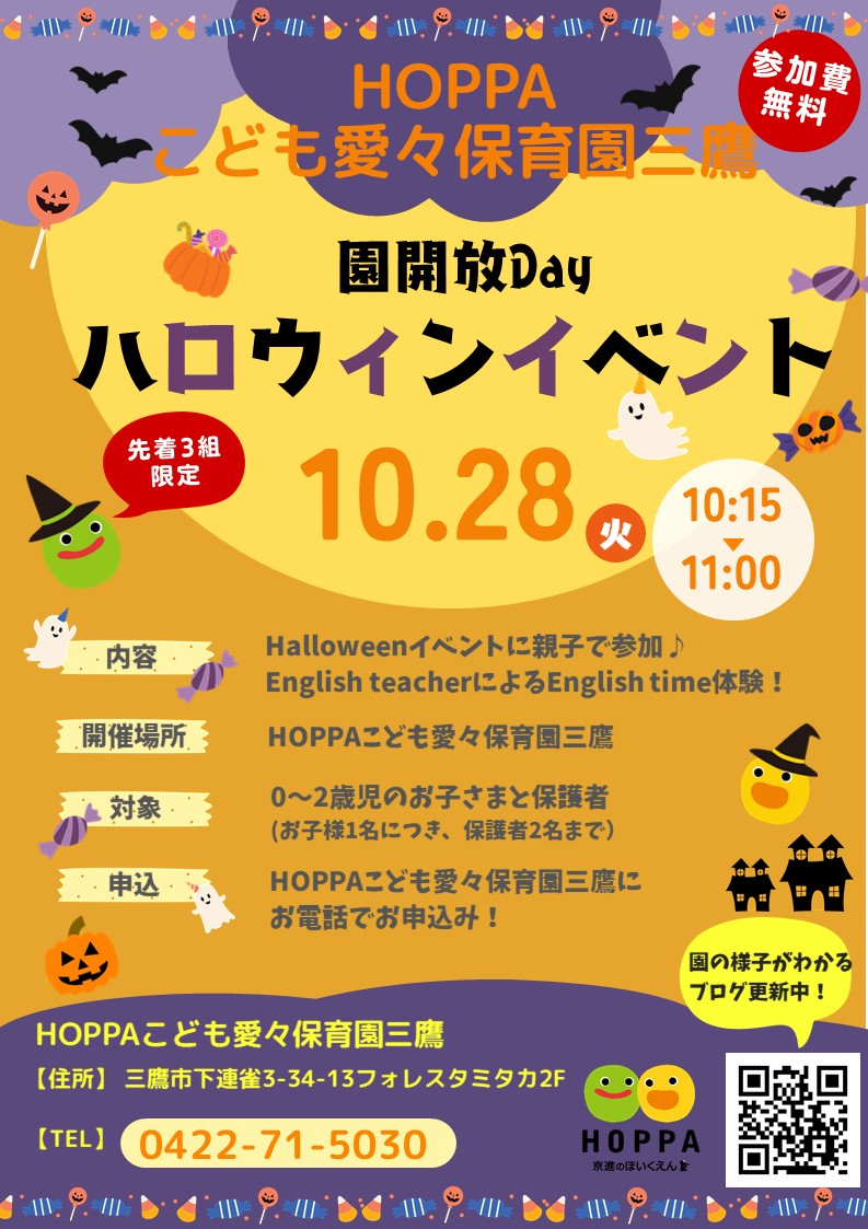 【東京都三鷹市】園体験イベント開催のお知らせ~ハロウィン🎃~【HOPPAこども愛々保育園三鷹】