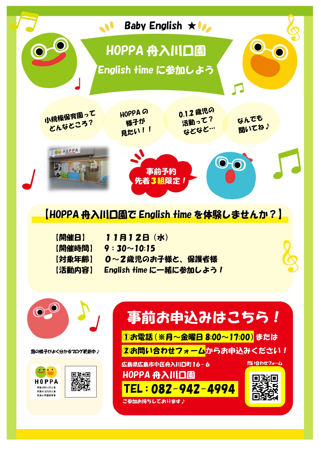 【広島市中区イベント情報】English time に参加しよう【HOPPA舟入川口園】