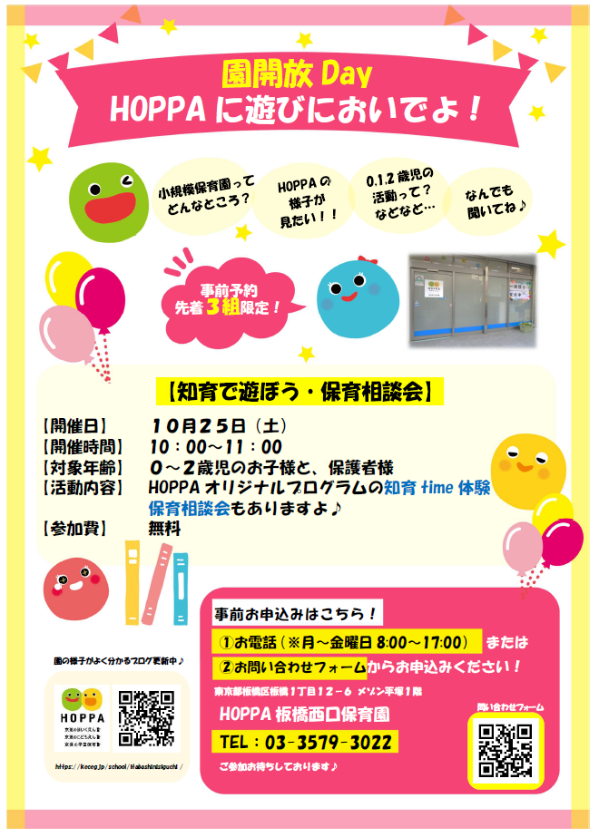 【東京都板橋区】園体験イベント開催のお知らせ~知育time体験・保育相談会~【HOPPA板橋西口保育園】