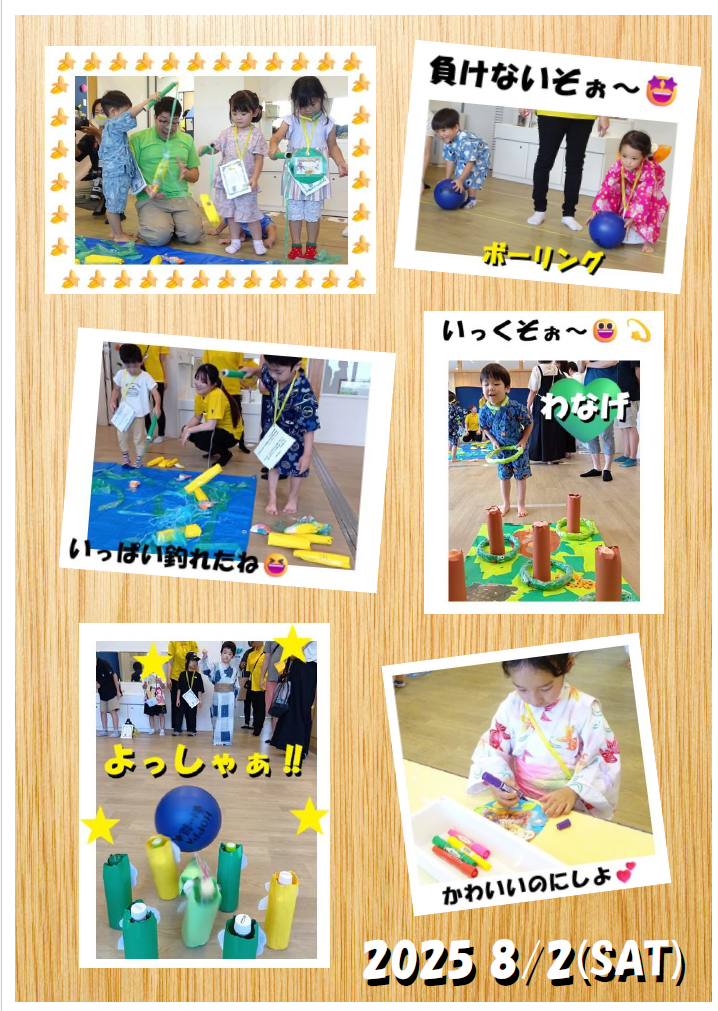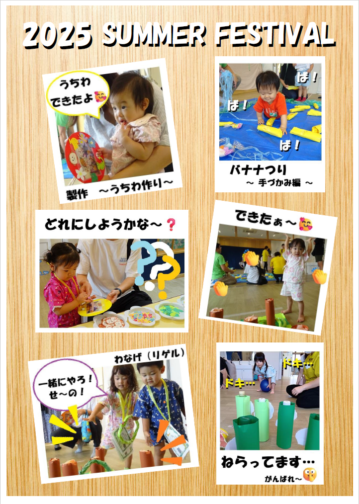 クラス毎にご来園いただき、親子で楽しくゲームや製作を楽しみ、笑顔いっぱいのなつまつりとなりました🥰