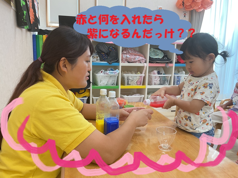 「紫色になるのは・・・。赤色と青色を混ぜて・・・」と理解することもできちゃう!さざなみkidsです✨