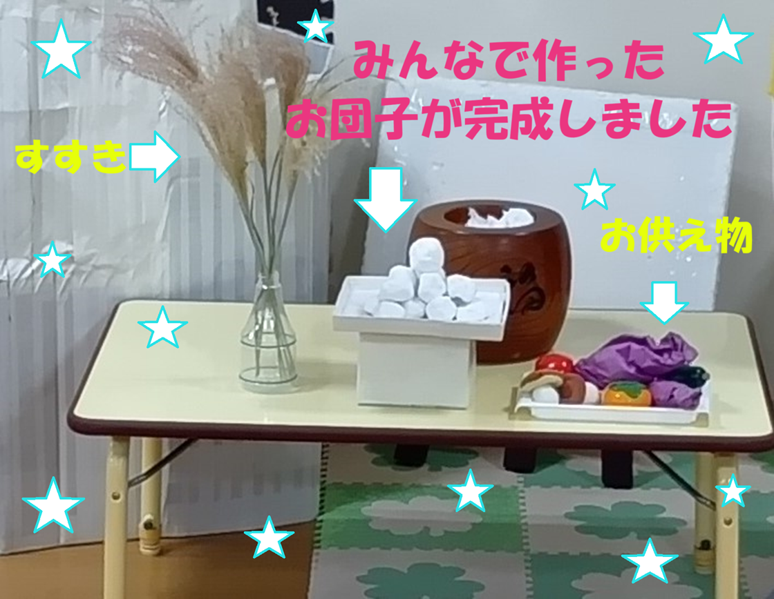 「お月様お団子食べてくれるかな~」と今晩のお月様が大きくなっているか気になる子どもたち♬