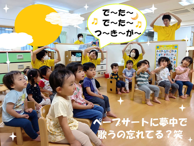 最初に『うさぎ』や『月』の歌をペープサートを見ながら歌いました♬