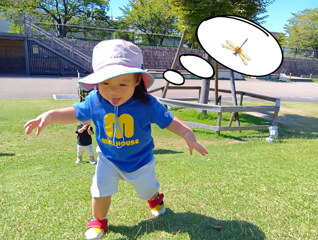最近では虫の名前を覚えたので、de愛広場で虫を見つけると「あ!Dragonfly(トンボ)だ!」などと英語を交えながら楽しんでいますよ🤭