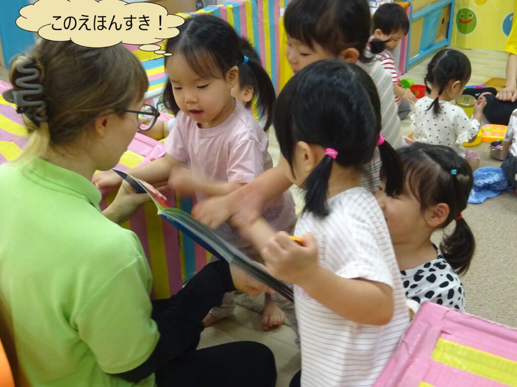 English timeを実施している成果もあり、英語で書かれた絵本にも興味津々の子どもたちです。