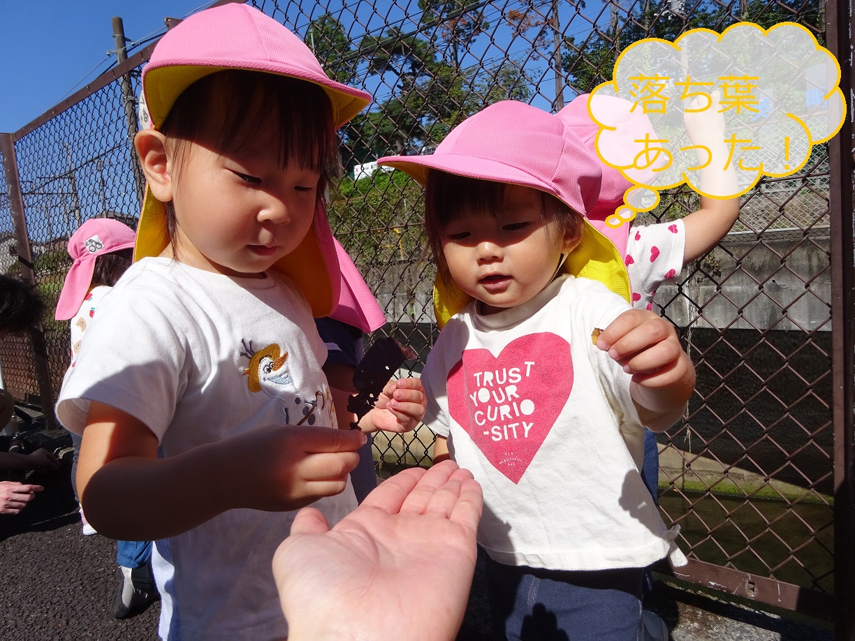言葉カードを見てからお散歩に行くと、「ほいくえんでみた、おちばだ!」と伝える姿が見られます❤