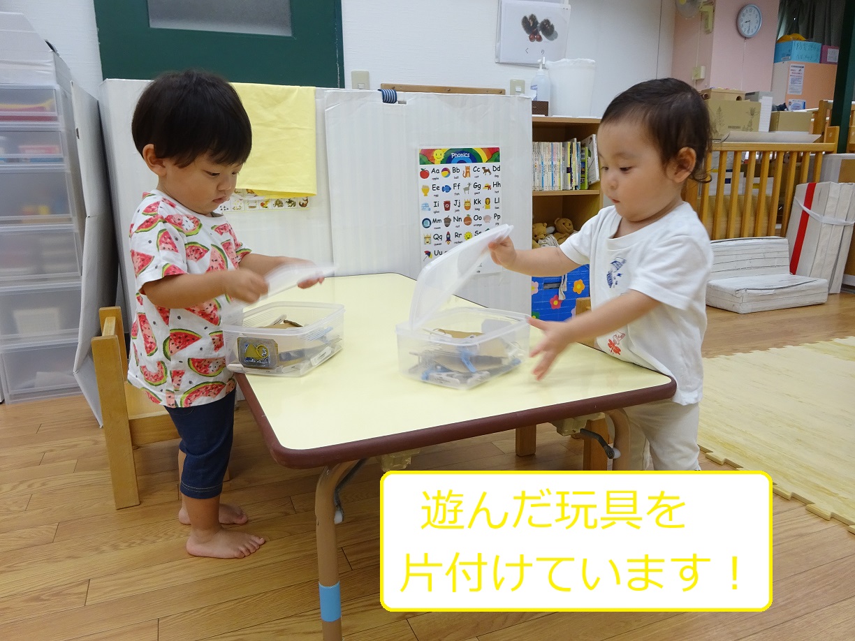 はじめは片付けが難しい様子で保育士と一緒に片付けをしていましたが、今では「遊んだら片付けて、次の遊びを出す」ができるようになりました✨