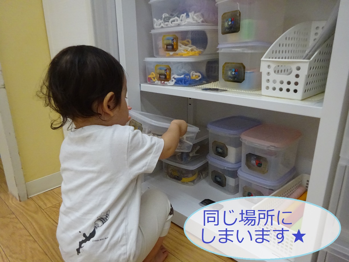 1歳児さんは自分で遊びたい玩具を決める→遊ぶ→片付けるまでを習慣としています!