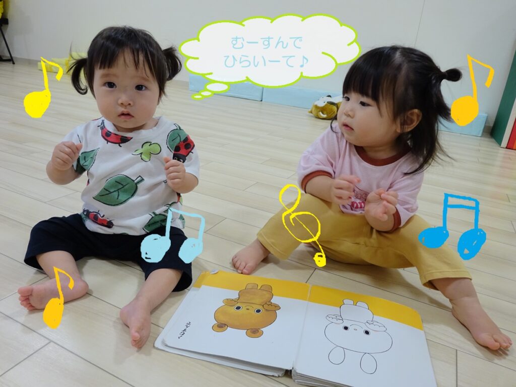 デネブ組では、春から“むすんで ひらいて”や、“てをたたきましょう”などの歌を絵本を用いて楽しんできました🍒