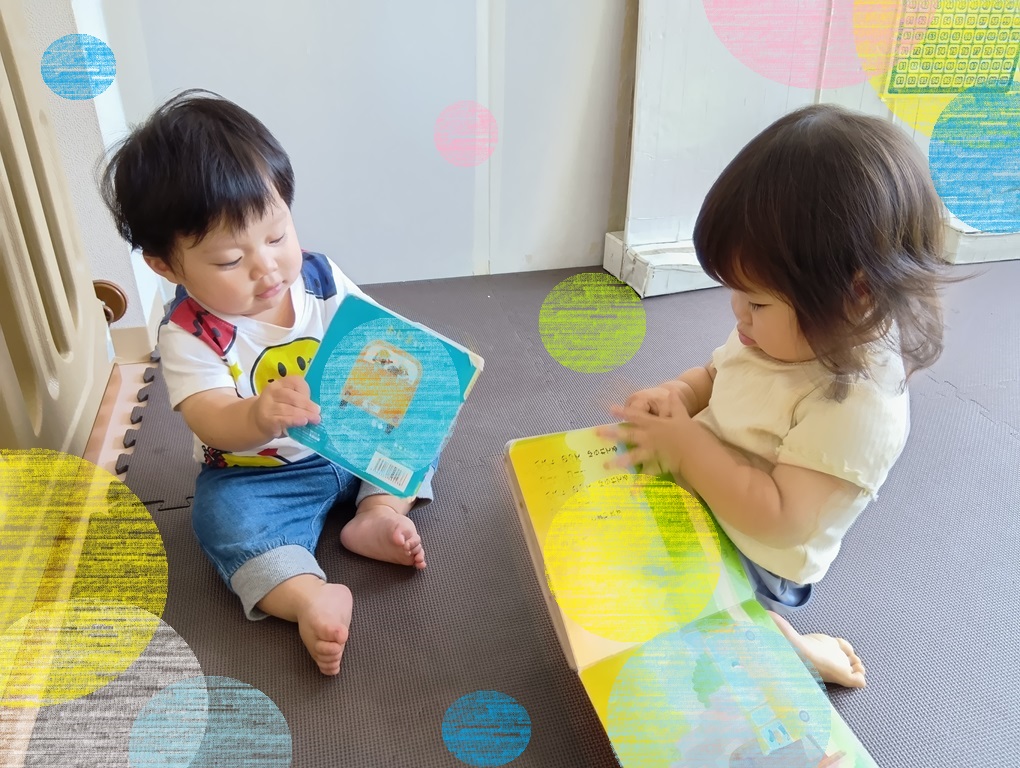 知育timeで興味や関心が広がるので、自分たちでお気に入りの絵本を持ってきて、指先を器用に使ってページをめくります。