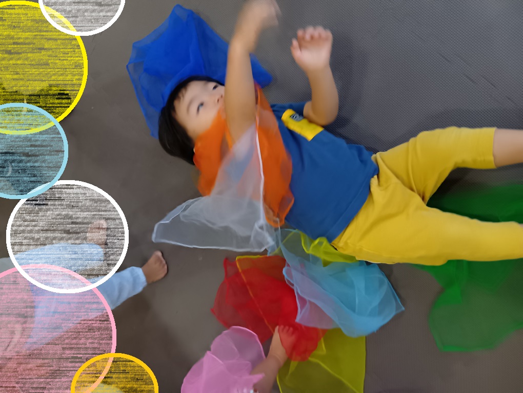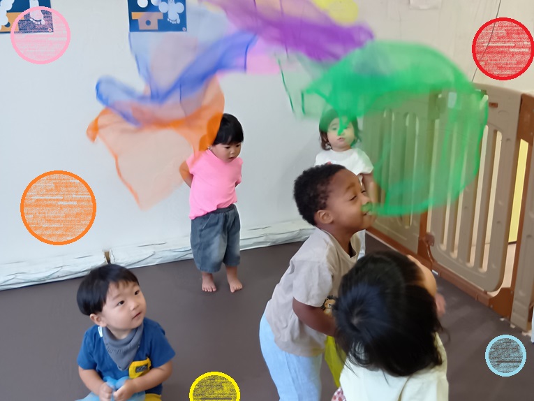 透けて見える薄い布なので、布越しに風景を見て「みえたよ~」「せんせい、みつけた」と新たな楽しみ方を発見する子もいます✨