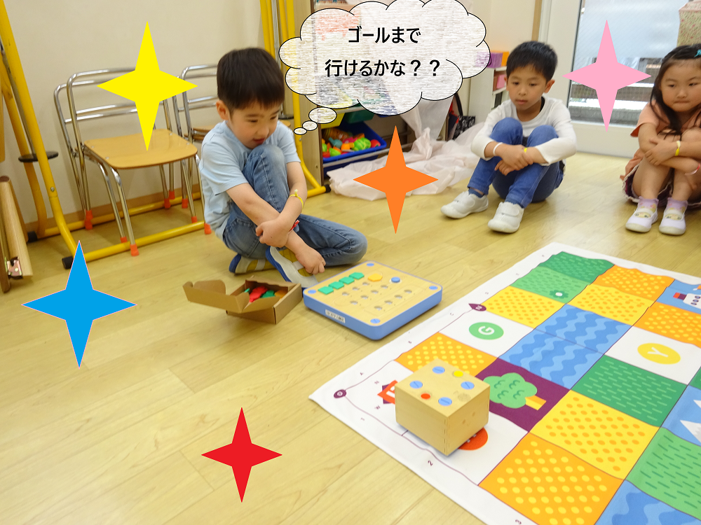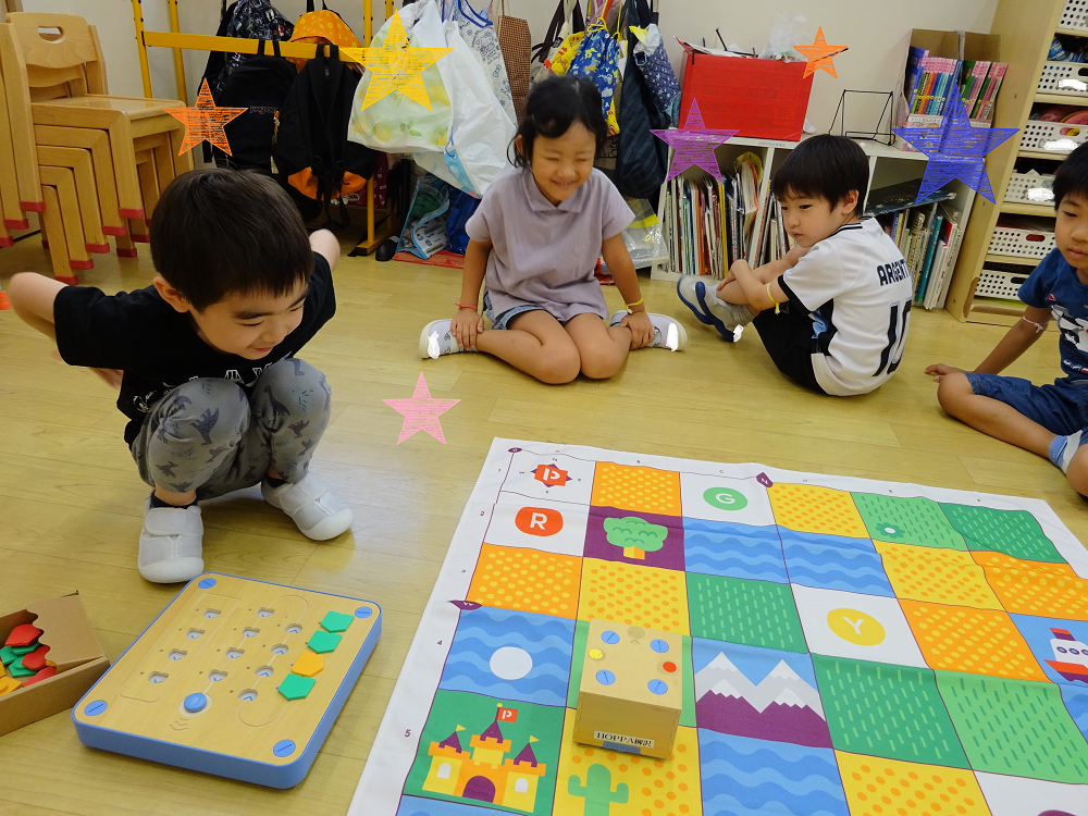 5歳児はキュベットといったロボットを使用し、子どもたちがマップにあるゴールを目指して楽しみながらプログラムをしていますので、活動の様子をご覧ください!