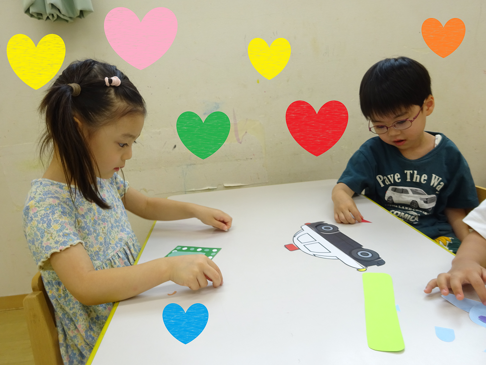 この様子は組み立て屋さんでパトカーや顔をパズルで作っているようですね!!