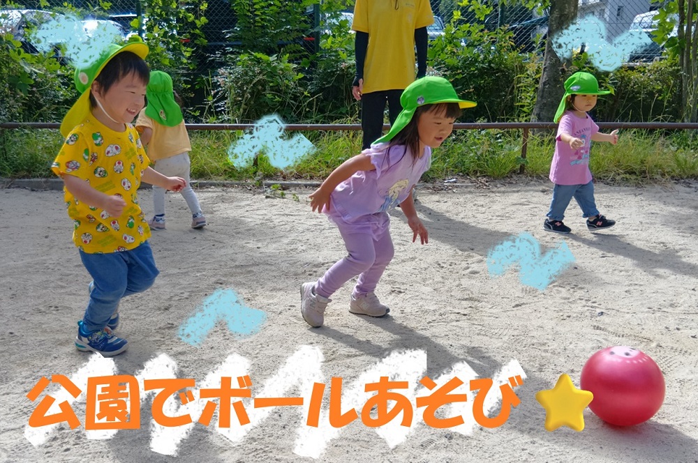 どんぐりがいっぱいの緑地公園や、消防署などなどいろんなところにお散歩に出かけることを楽しむ服部緑地キッズです!