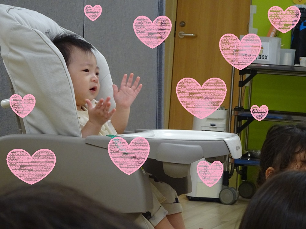 スピカ組(0歳児)のお友だちは、ハイチェアに座ってお友たちと一緒に歌やEnglishSongに参加し、手足を動かしリズムに乗ってニコニコ楽しんでいる姿が増えてきましたよ♡
