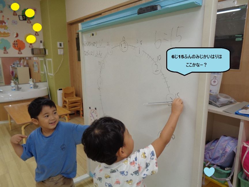 お友だちと一緒に行うことで楽しい雰囲気の中、長針短針の役割の違いに気付けるようになってきました。