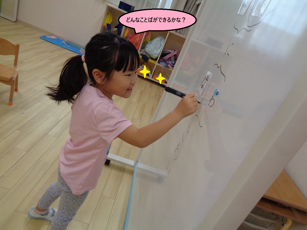 「先生、これ“あ”だ!」「“○○って書いてある!”」と読めた文字を嬉しそうに保育者に伝える姿も増えてきましたよ!