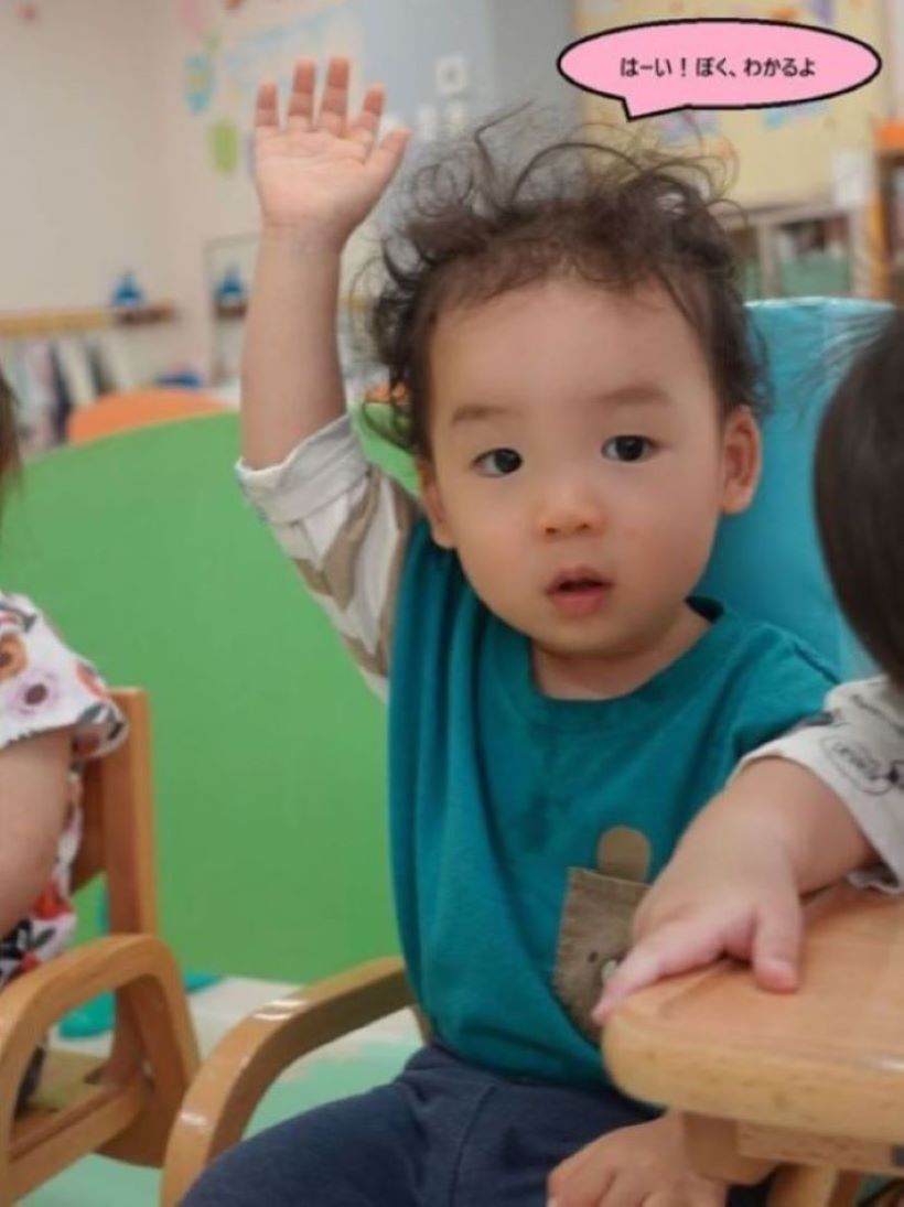 お名前呼びで自分の名前が呼ばれると、元気に手を挙げニコッと笑ってアピールしてくれるようになりました。