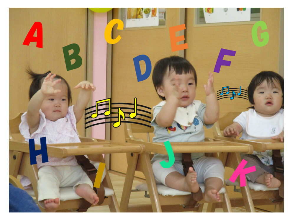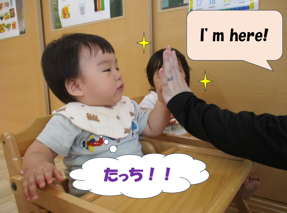 0歳児から1歳児クラスでのEnglish timeの様子から、身体を使ってEnglish songやdanceを楽しんだり、英単語を発音できたりと沢山の成長が見られましたね!