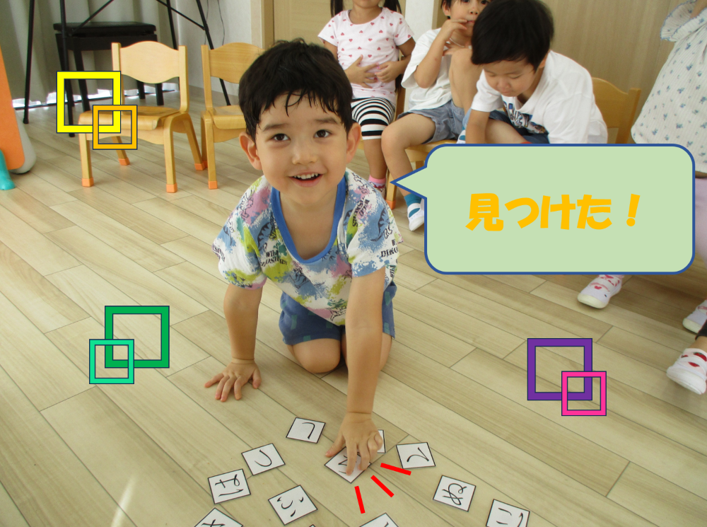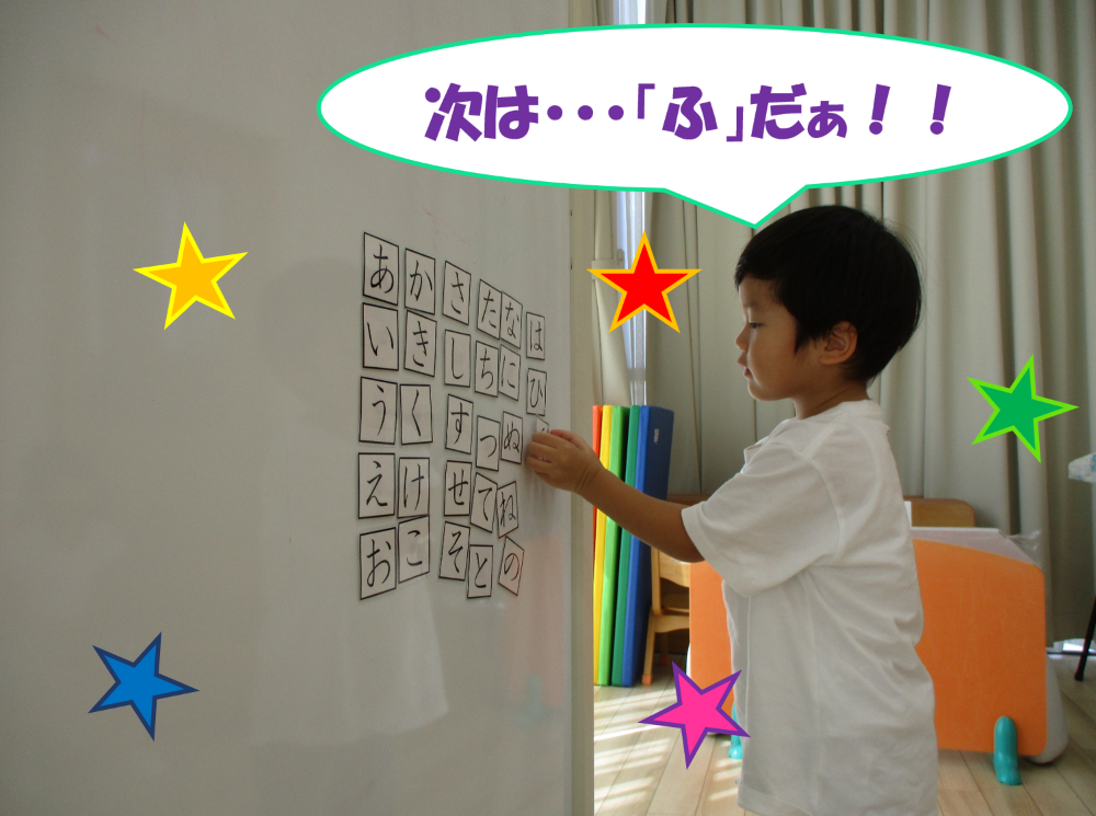 自分の名前にあるひらがなや兄弟、友だちの名前のひらがなを見つけると「○○くんの【ち】だよ!」と得意気に教えてくれたり、ひらがなの50音順を考えたりしながら積極的に取り組んでいます!