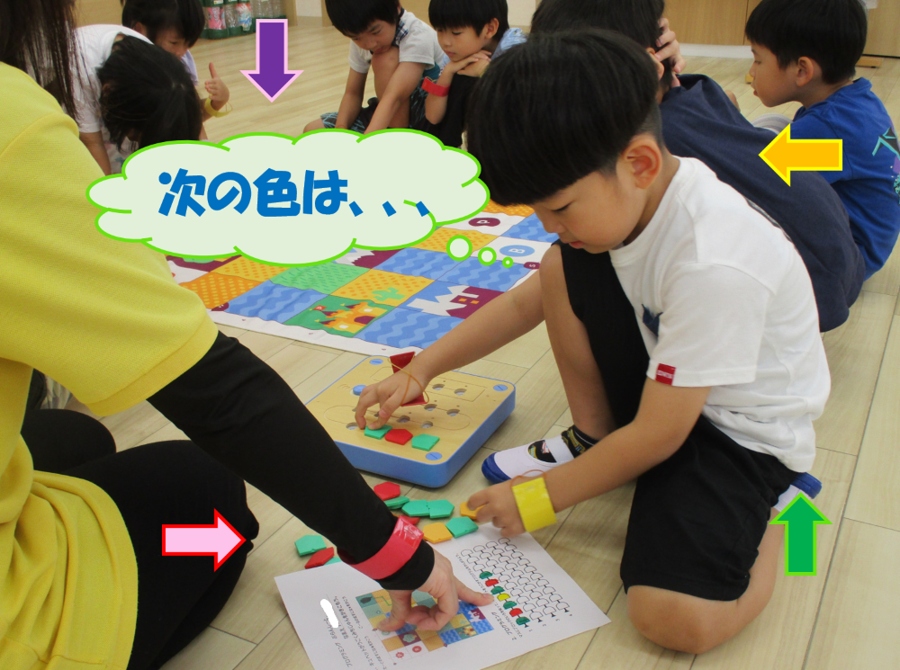 毎回レッスンを行っていくうちに、自分で考えるだけではなく、周りの友だちに「ここ一緒の答えになったね!」と出来た喜びを友だちと一緒に分かち合う姿も見られるようになりました。
