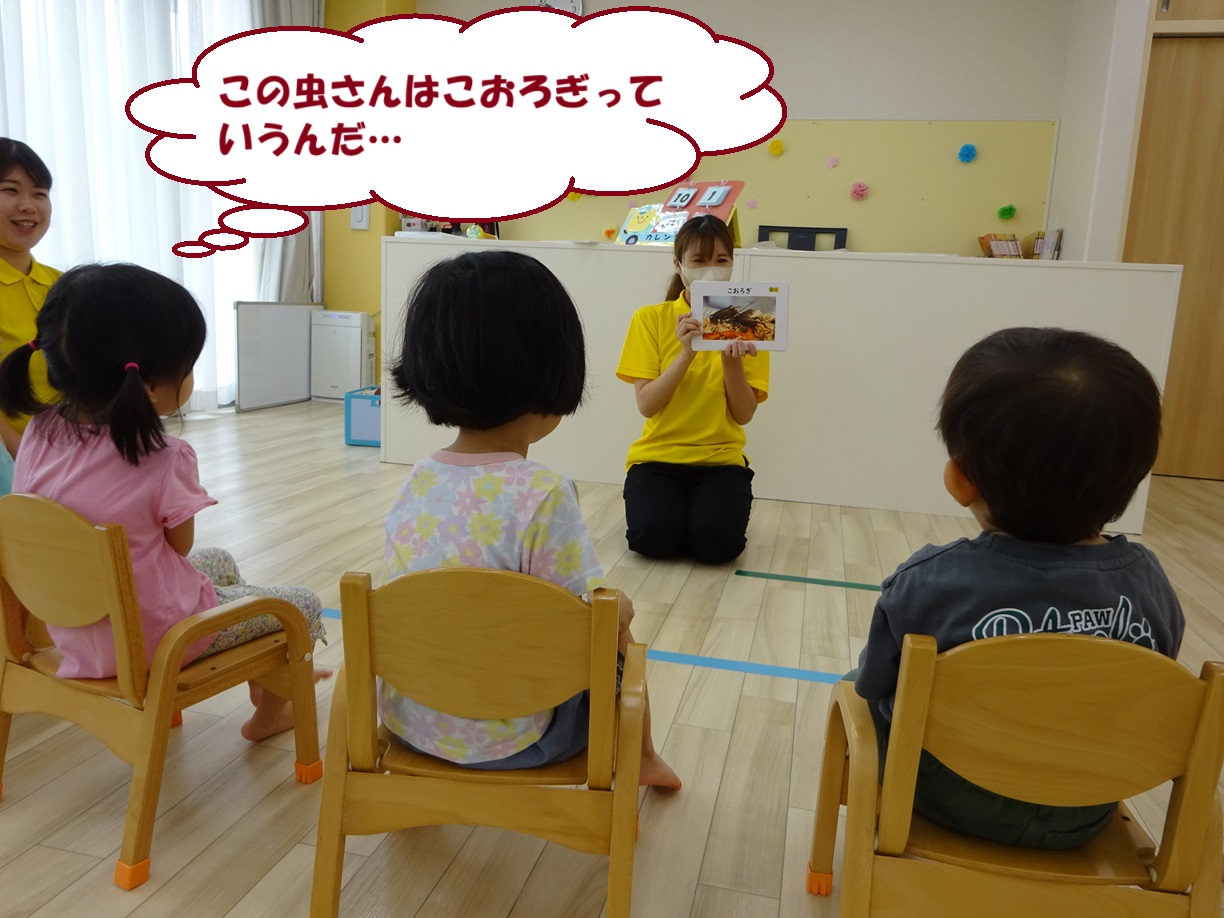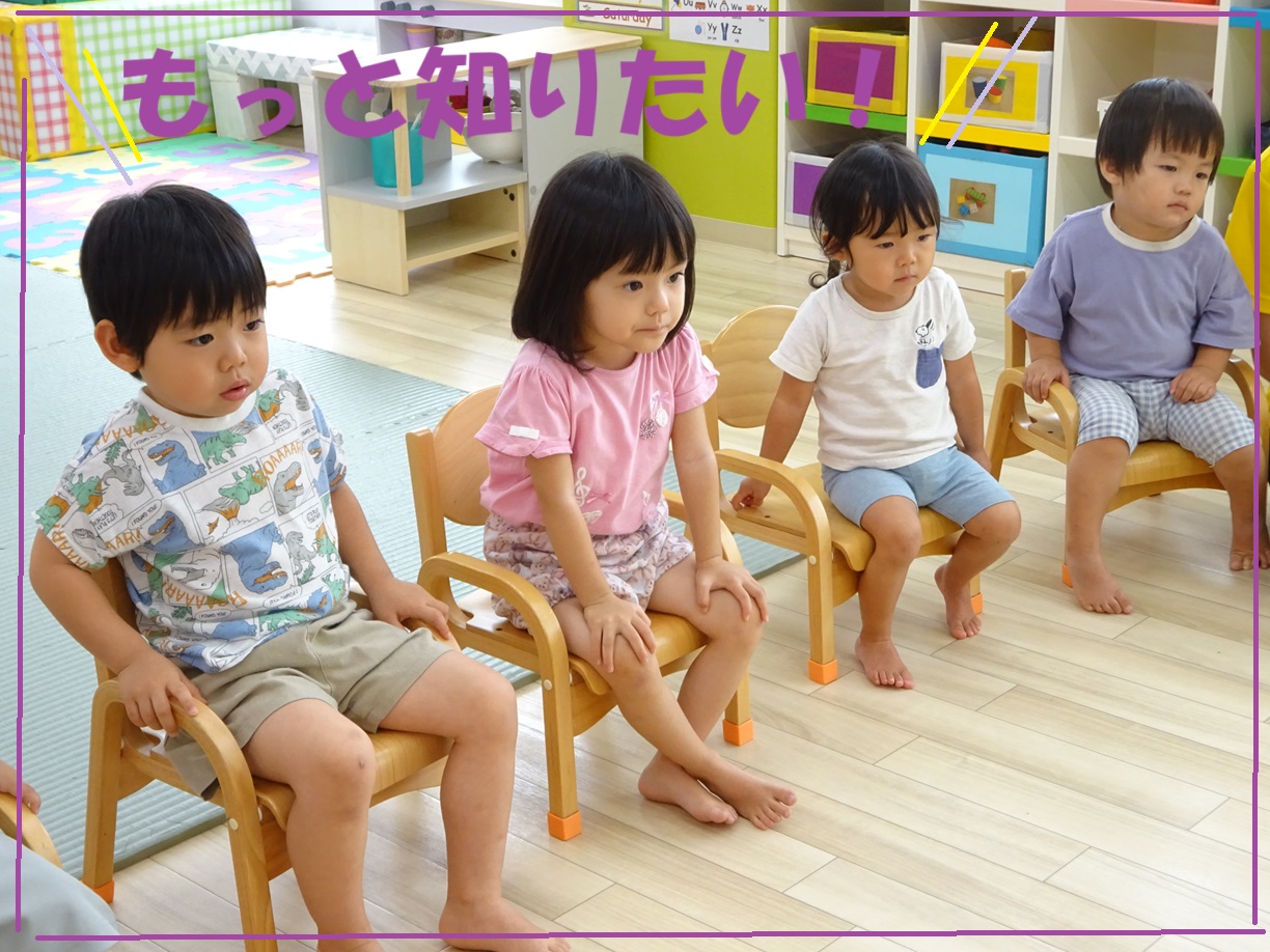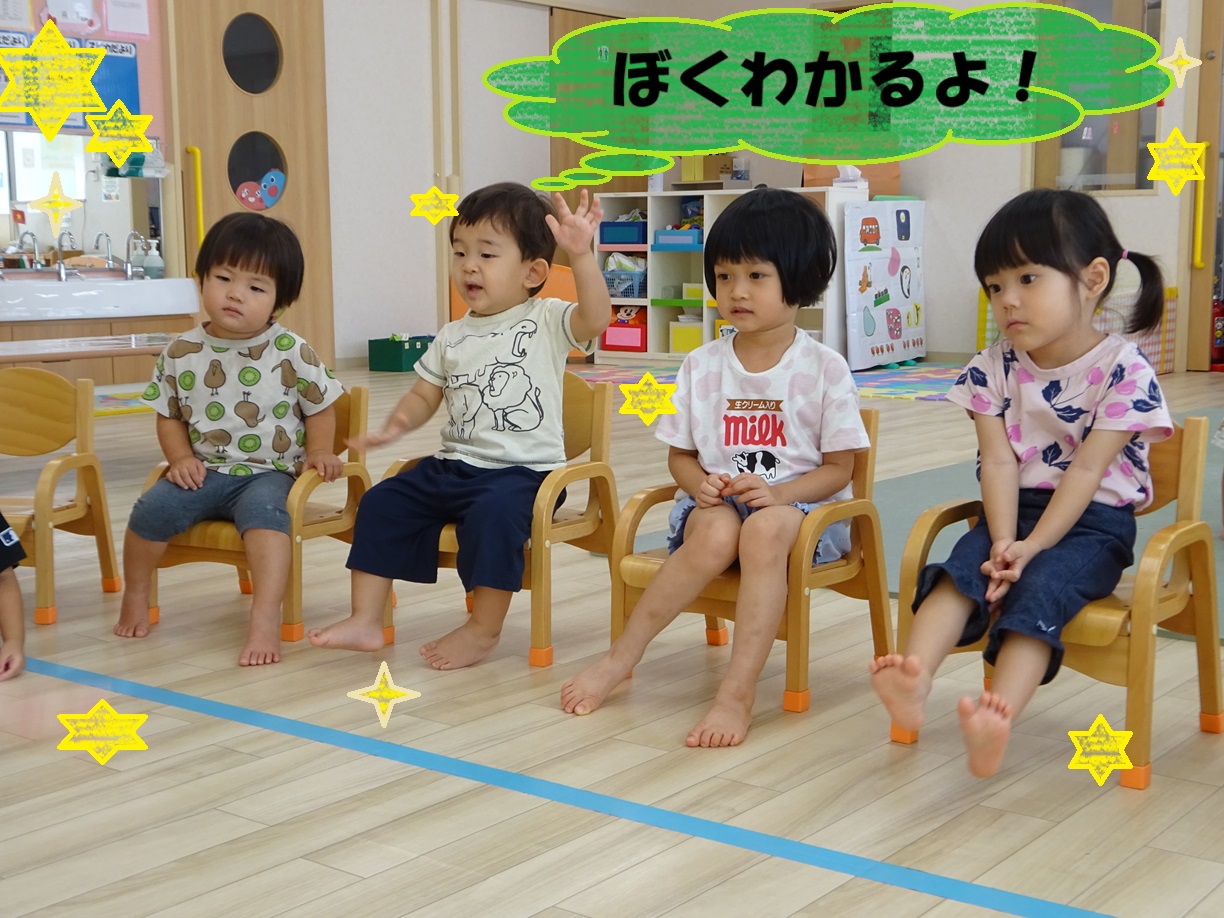 4月は椅子に座ってお話を聞くことが難しかった子も今では集中力が伸びてきてしっかりと椅子に座ってお話を聞くことができるようになりました!
